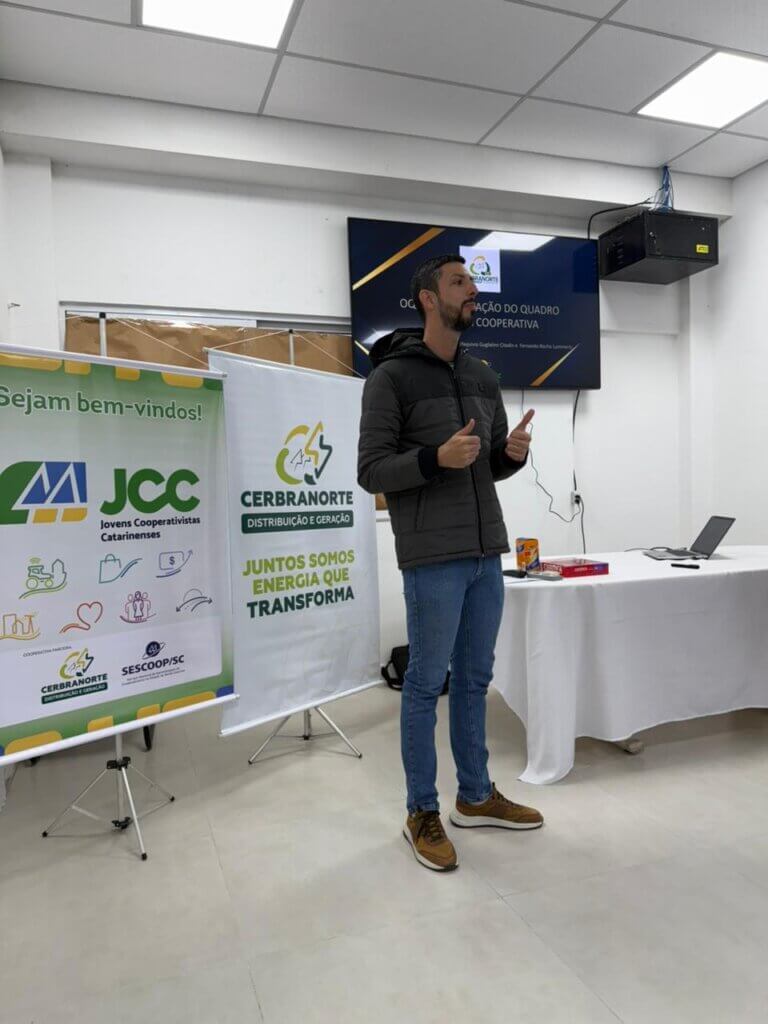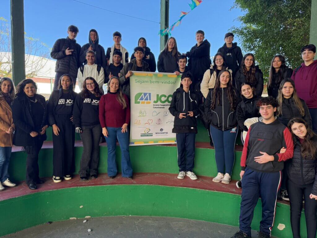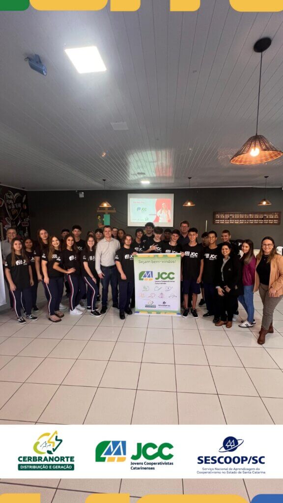 Desde o mês de junho, a Cerbranorte promove sua primeira turma do Programa Jovens Cooperativistas Catarinenses (JCC), idealizado pelo SESCOOP/SC. Participam do programa 27 estudantes do 2º ano do Ensino Médio da Escola Dom Joaquim, com idades entre 16 e 18 anos. A iniciativa tem como objetivo aproximar os jovens do cooperativismo, despertando o protagonismo juvenil e formando futuras lideranças para o setor.
