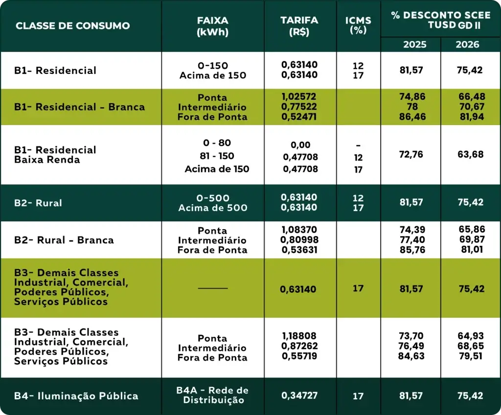 Tarifas de Energia BAIXA TENSÃO