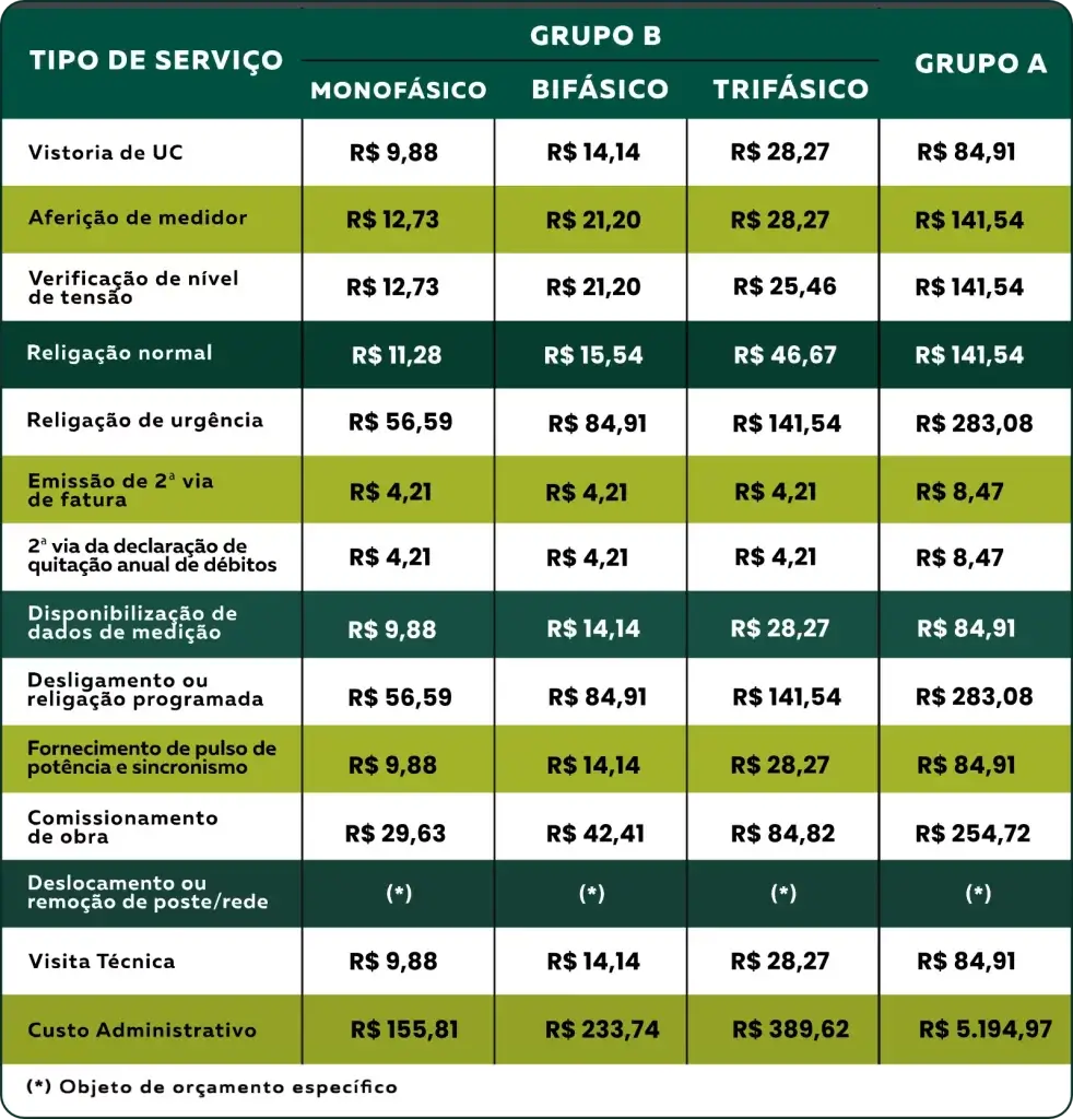 Anualmente, exceto nos anos de revisão tarifária, acontece o reajuste tarifário aprovado pela Aneel (Agência Nacional de Energia Elétrica) mediante publicação de resolução homologatória específica.